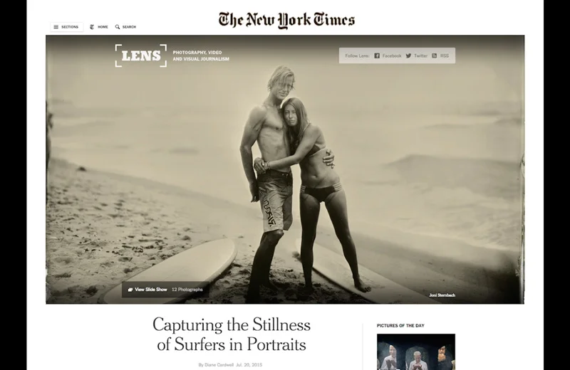 In an age of photographic advancements, Joni Sternbach keeps it old school, using one of portraiture’s earliest processes to capture surfers in their natural element. On a bluff in Montauk one late afternoon, Sternbach watched the clouds part, light flood the horizon, and low sun bounce off the ocean surface. It was the shot of a lifetime—until surfers entered her frame, enjoying a majestic moment of their own. The happy accident gave life to her tintype portrait series, “Surfland.” After begging (literally pleading) Joni to take our photo, we turned our lens on her to learn more.